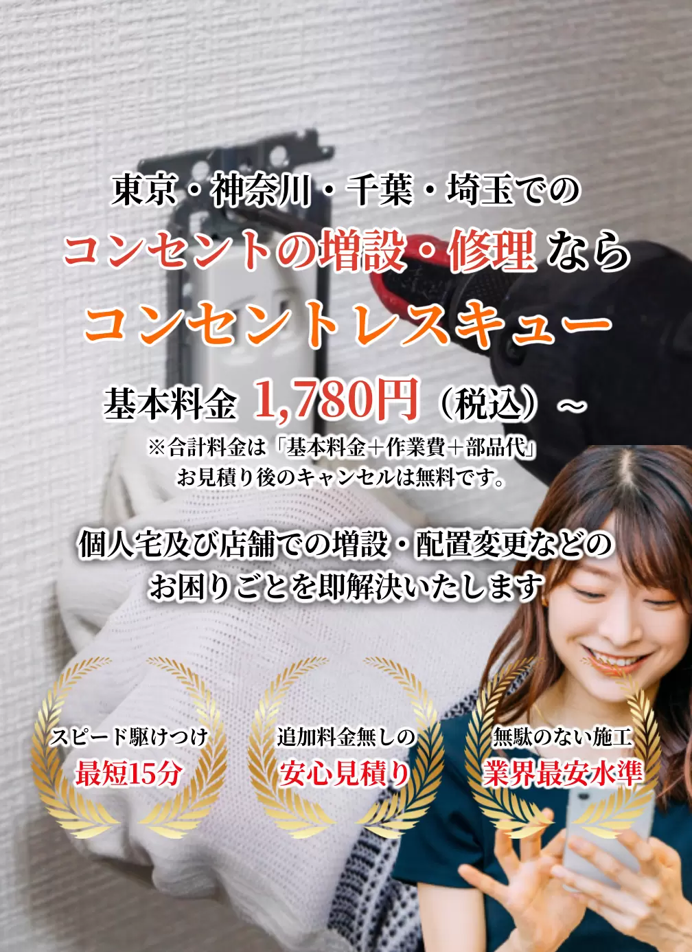 東京・神奈川・千葉・埼玉でのコンセントの増設・修理なら
